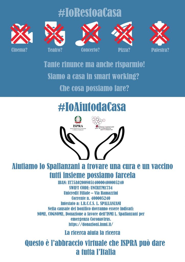 ISPRA adheres to the fundraising campaign for Covid-19 emergency assistance activities in support of the Spallanzani Hospital in Rome. In two days 1.850 euros have already been offered by the employees of the Institute and the campaign will continue until the emergency time.