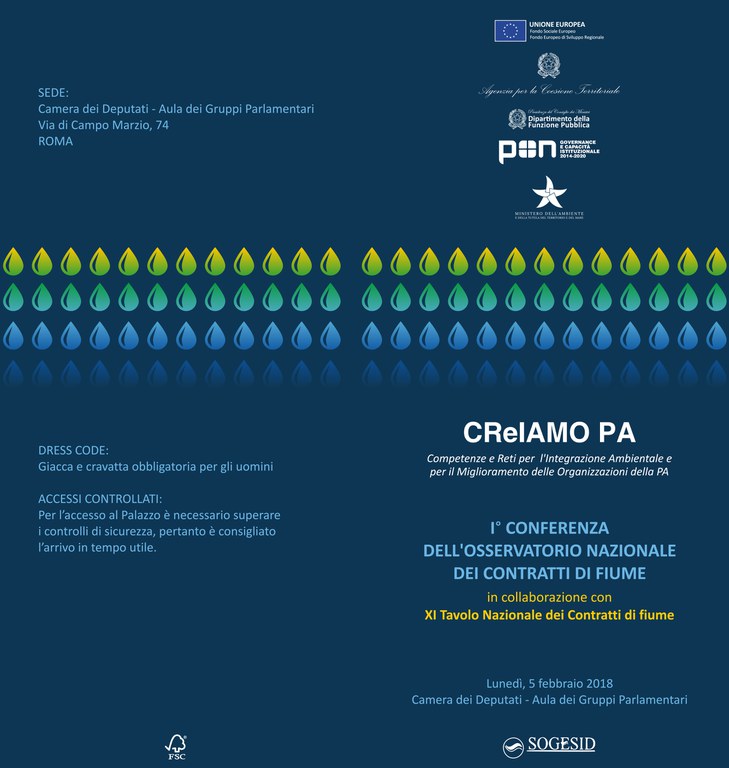 - On 5 February 2018 in the room of Parliamentary Groups of the Chamber of Deputies will be held the first First conference National Observatory of the River Contracts, a normative protocol, established at the Ministry of Environment last november 2017. The Observatory promoted and coordinated by the Ministry of Environment - included ISPRA, Regions, Basin Authority and experts of River protocol - is a central structure of coordination that answer to the need of harmonization to implementation the River Contracts (of coastline, lake, groundwater, etc.) on a local, regional and national scale. The General Director of Ispra will be part of the afternoon session of the works.