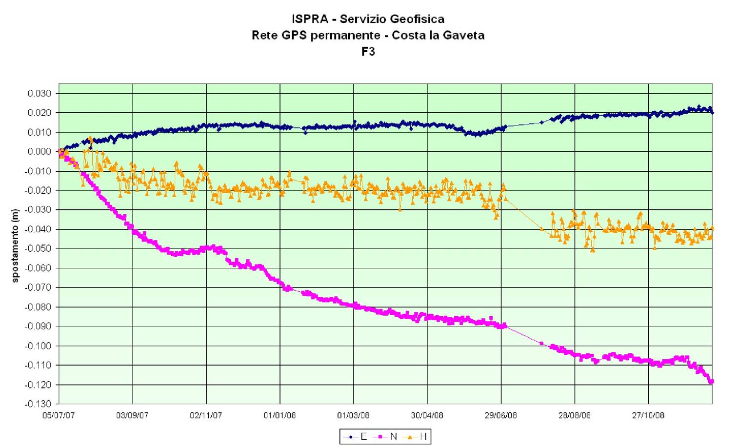 Displacements over time in the N, E, U components detected by F3 GPS permanent station |
