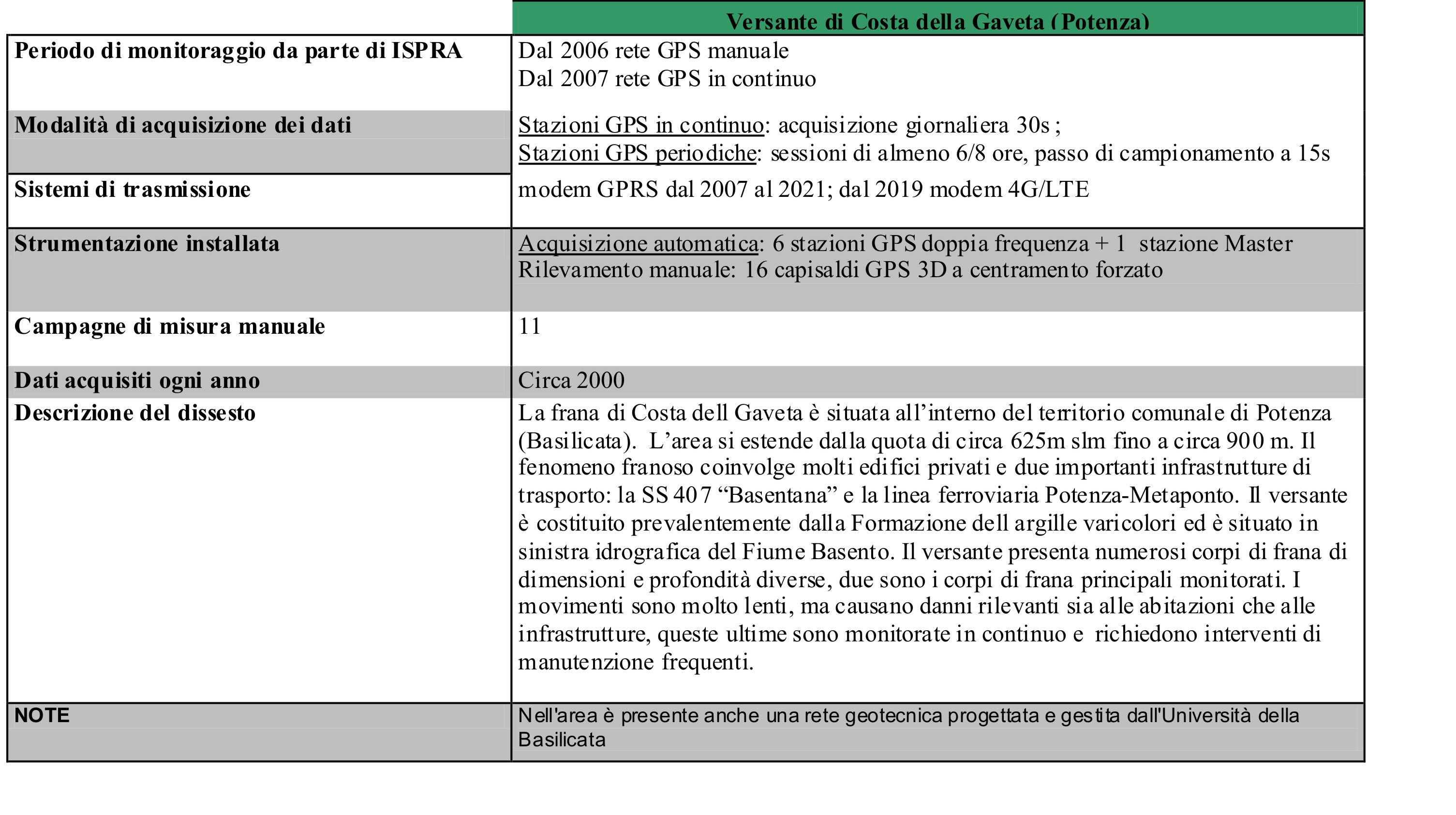 Monitoring network installed by ISPRA on the Costa della Gaveta slope: