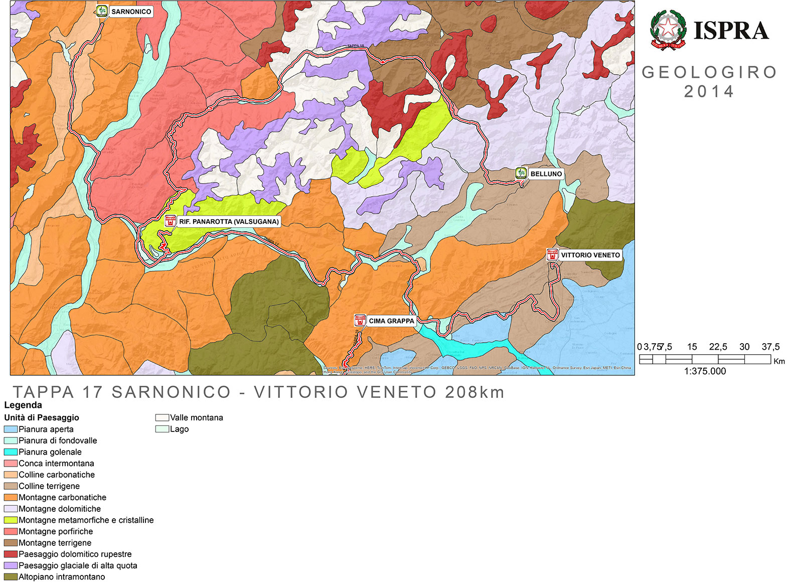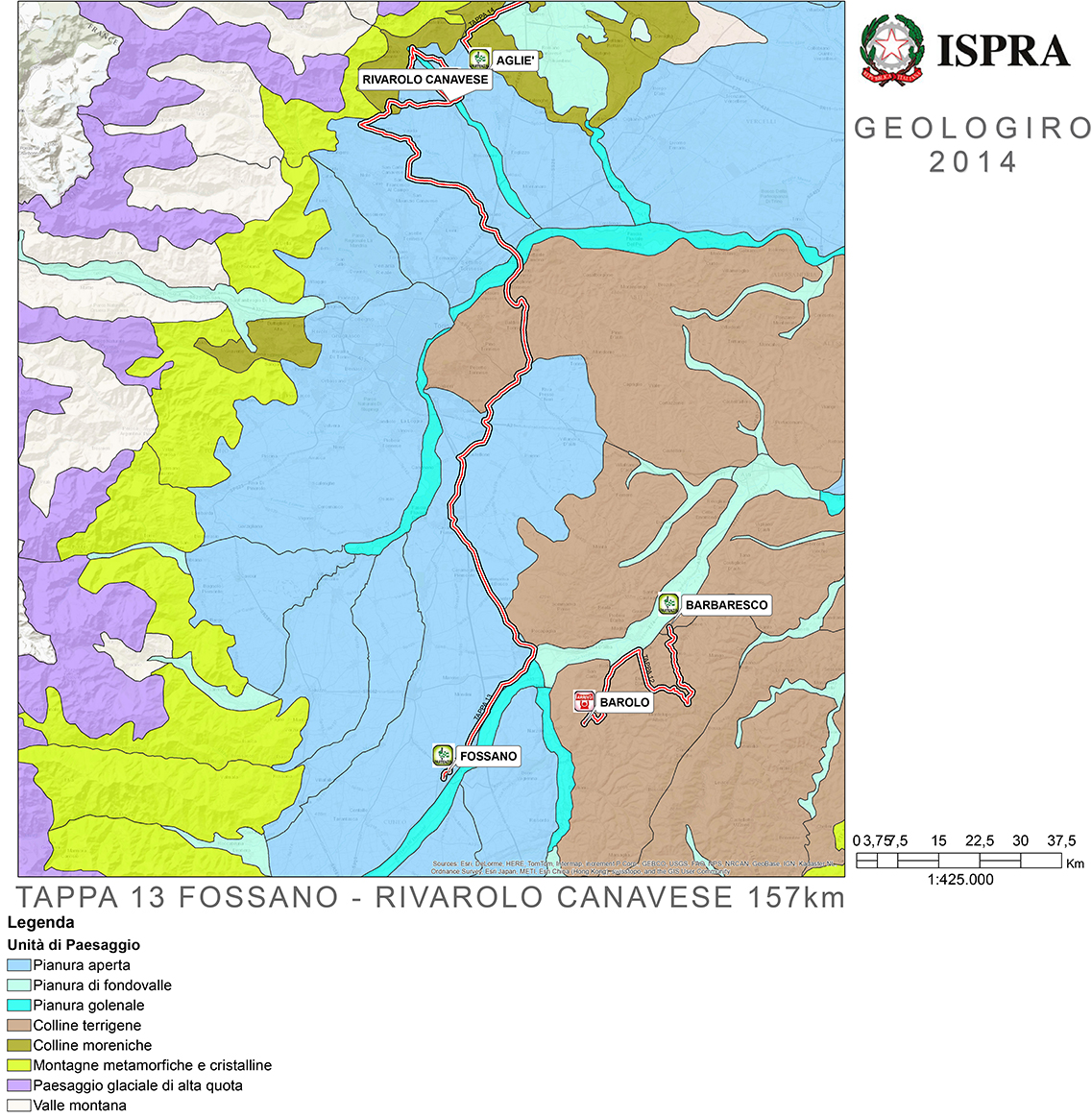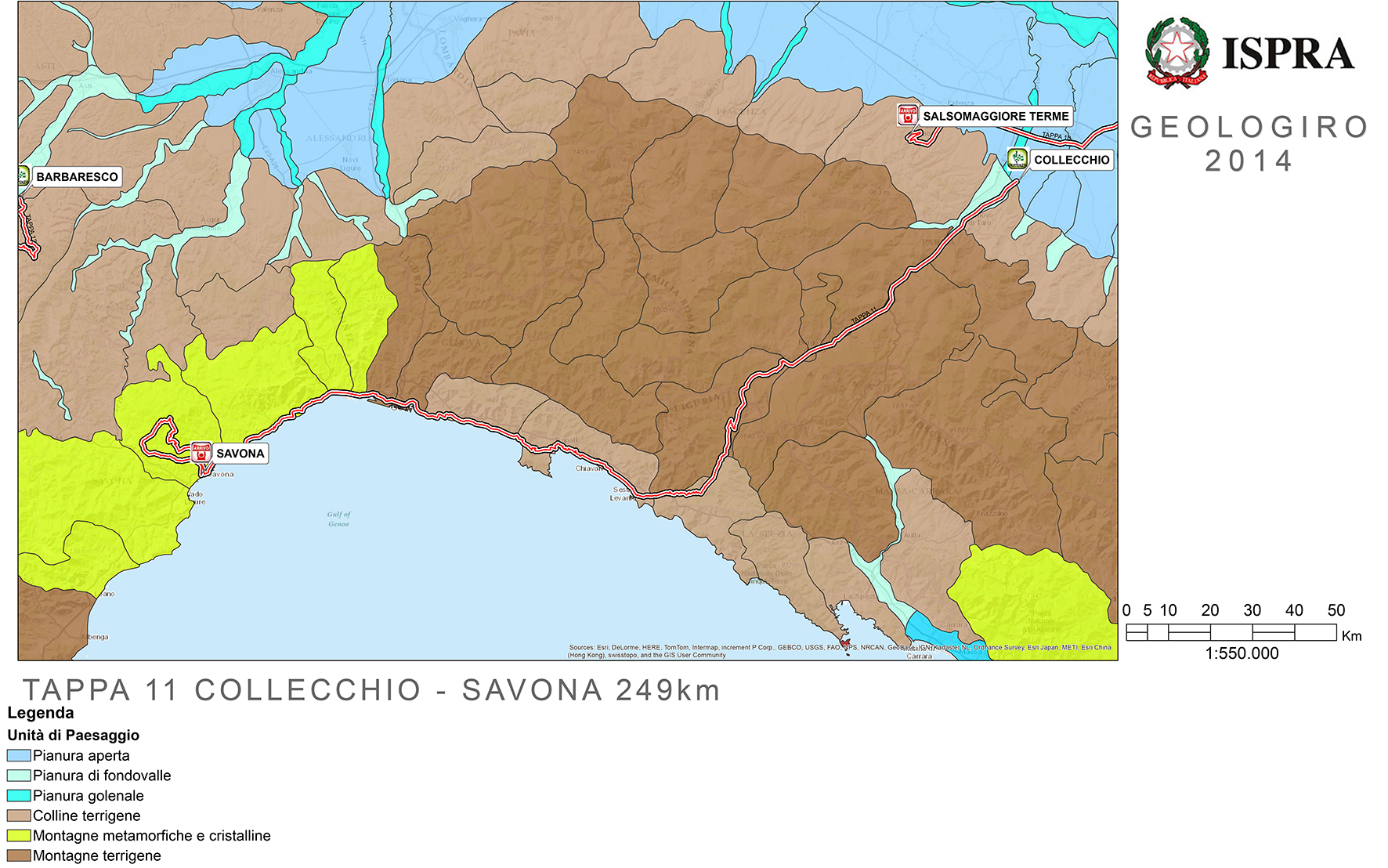 La conformazione del territorio di 18 tappe del Giro d’Italia, che attraversa il paese in molti luoghi “simbolici” dal punto di vista della struttura geologica, verrà spiegata al grande pubblico che segue il ciclismo dall’ISPRA con il progetto “GeoloGiro”, che intende divulgare il patrimonio di conoscenze relativo al nostro paese: l’idea consiste nel dedicare uno spazio comunicativo alla descrizione dei luoghi percorsi dal Giro d’Italia, dal punto di vista territoriale, naturalistico e geologico.