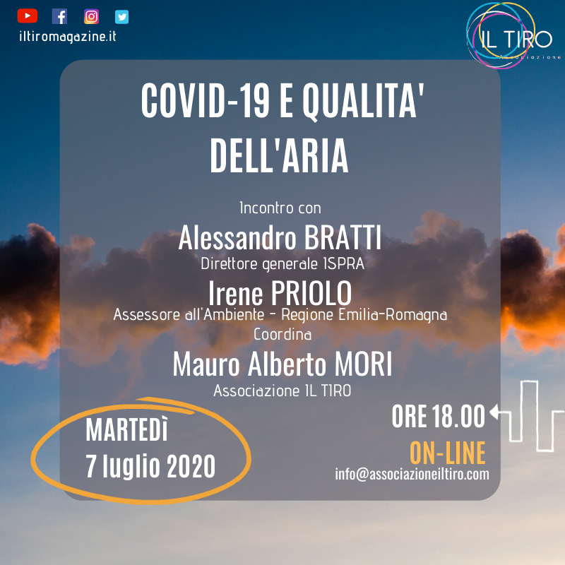 Martedì 7 luglio a partire dalle ore 18.00, il Direttore Generale dell'Ispra, Alessandro Bratti, parteciperà all'incontro "Covid-19 e qualità dell'aria". Si discuterà degli impatti del lockdown sulla qualità dell'aria e sulle presunte correlazioni tra inquinamento e diffusione/impatto del virus.