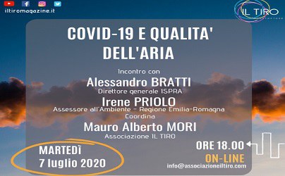 - Martedì 7 luglio a partire dalle ore 18.00, il Direttore Generale dell' Ispra, Alessandro Bratti, parteciperà all'incontro "Covid-19 e qualità dell'aria". Si discuterà degli impatti del lockdown sulla qualità dell'aria e sulle presunte correlazioni tra inquinamento e diffusione/impatto del virus.