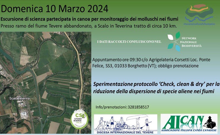 Nell'ambito del progetto di Scienza partecipata "#teveremolluschifantastici...e dove trovarli è prevista per il 10 marzo una escursione in canoa sul fiume Tevere finalizzata al monitoraggio dei molluschi.