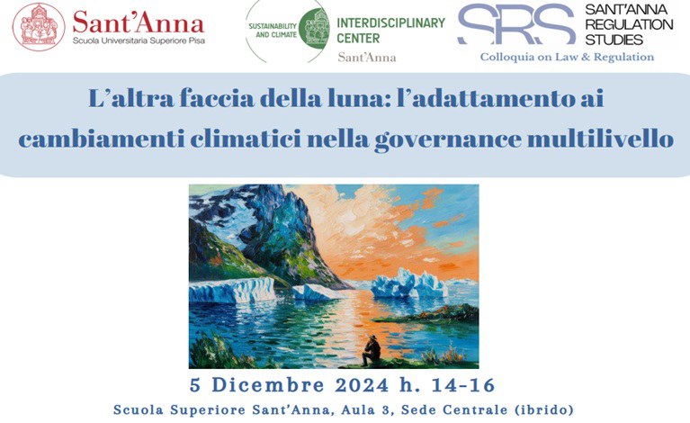 - Giovedì 5 dicembre alle ore 14.00 , presso la sede centrale della Scuola Superiore Sant’Anna , è in programma il seminario “L’altra faccia della luna: l’adattamento ai cambiamenti climatici nella governance multilivello”.
