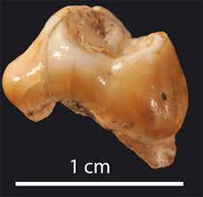 Nella foto: Dente molare di 1 cm appartenente a un asinide fossile.