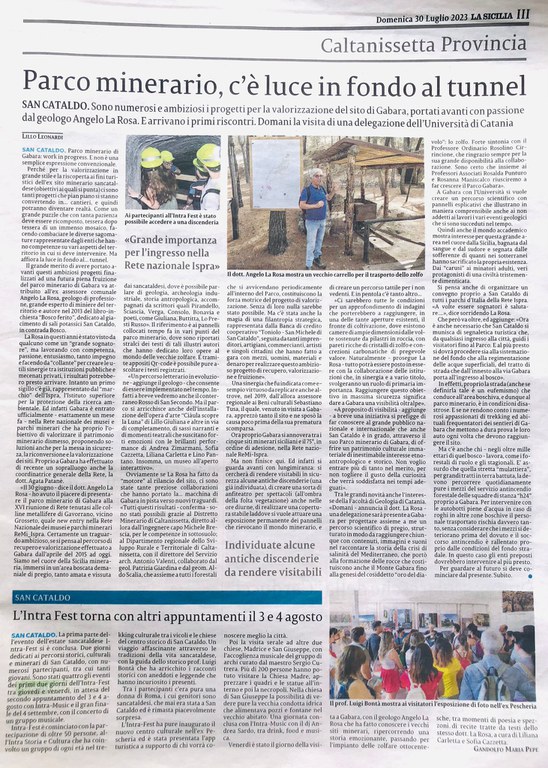 Il parco minerario di Gabara a San Cataldo (CL) 75esimo aderente della Rete ReMi di ISPRAhttps://www.isprambiente.gov.it/it/progetti/cartella-progetti-in-corso/suolo-e-territorio-1/miniere-e-cave/progetto-remi-rete-nazionale-dei-parchi-e-musei-minerari-italiani/notizie/il-parco-minerario-di-gabara-a-san-cataldo-cl-75esimo-aderente-della-rete-remi-di-isprahttps://www.isprambiente.gov.it/it/progetti/cartella-progetti-in-corso/suolo-e-territorio-1/miniere-e-cave/progetto-remi-rete-nazionale-dei-parchi-e-musei-minerari-italiani/notizie/il-parco-minerario-di-gabara-a-san-cataldo-cl-75esimo-aderente-della-rete-remi-di-ispra/@@download/image/La Sicilia 30 luglio 2023 Parco di Gabara nella Rete Remi.jpg