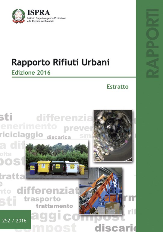 Il Rapporto Rifiuti Urbani - Edizione 2016 fornisce i dati, aggiornati all’anno 2015, sulla produzione, raccolta differenziata, gestione dei rifiuti urbani e dei rifiuti di imballaggio, compreso l’import/export, a livello nazionale, regionale e provinciale. Riporta, inoltre,  le informazioni sul monitoraggio dell’ISPRA sui costi dei servizi di igiene urbana e sull’applicazione del sistema tariffario.